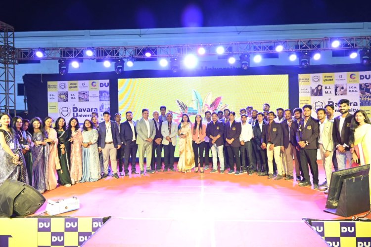 Shri Davara University First Annual Event “DU Ignite” Held in Nava Raipur: Shri Davara University organized its first annual event, “DU Ignite,” which showcased a wonderful blend of education, arts, and culture. The program began with the presentation of the university’s progress report by the Registrar Kumar Shwetabh. Following this, Director General Dr. Charmi Davara highlighted the exceptional work carried out by students and staff over the past year. She specifically mentioned B.A. student Rahul, who secured second place in the state-level 400-meter race. Additionally, she acknowledged the achievements of students placed under the Skill Development Program. The chief guest, former Mrs. World Dr. Aditi Govitrikar, delivered an inspiring message to the students. Special guests Amrita Kushwaha, Ritika Yadav, Dilip Kumar, and Pooja Sahu also attended the event.